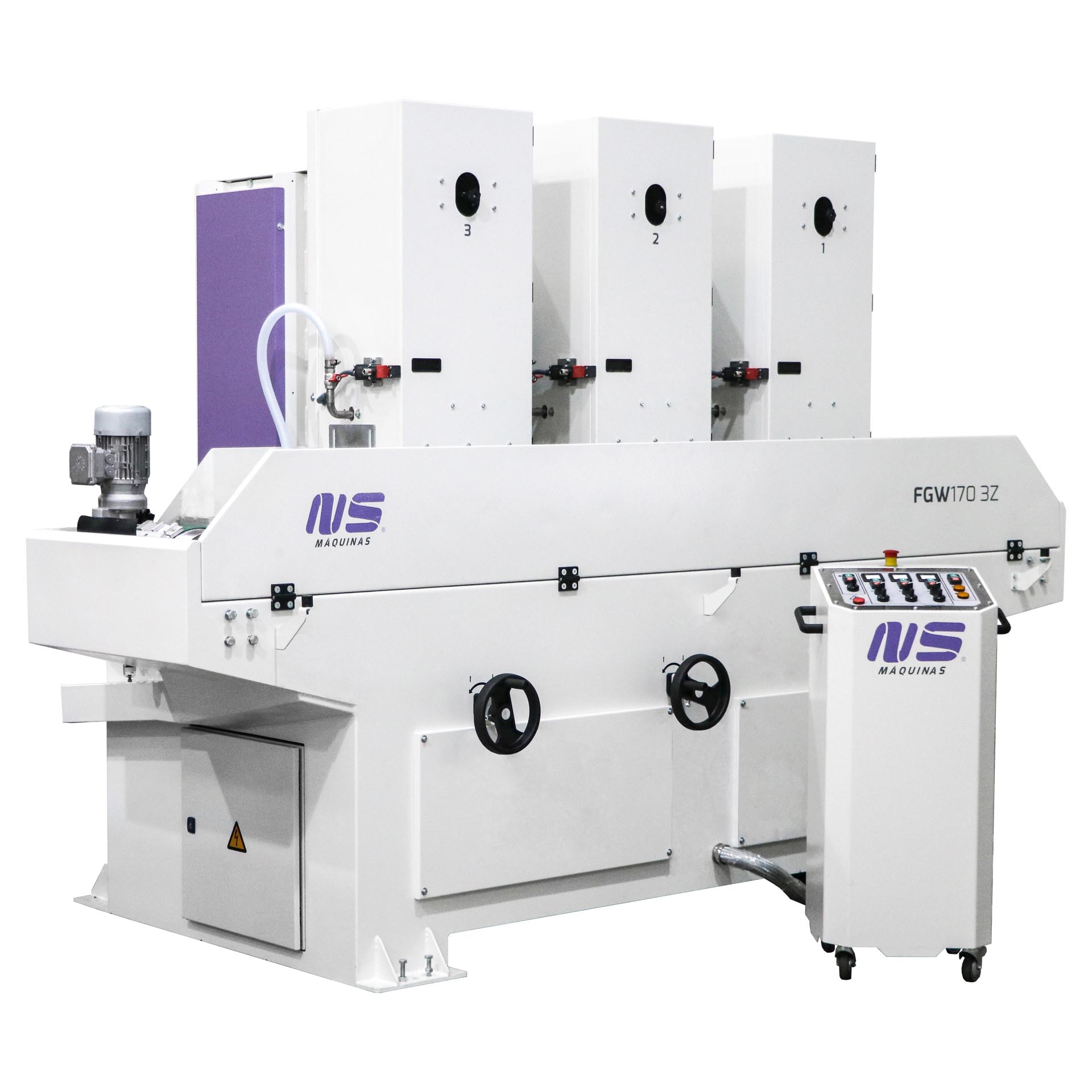 FGW170 3Z is a Machine with 3 grinding belts for Rectangular tubes and bars. The FGW machines are available in width 170mm to 330mm, with 1 – 6 belt units and 0 – 2 brush units.