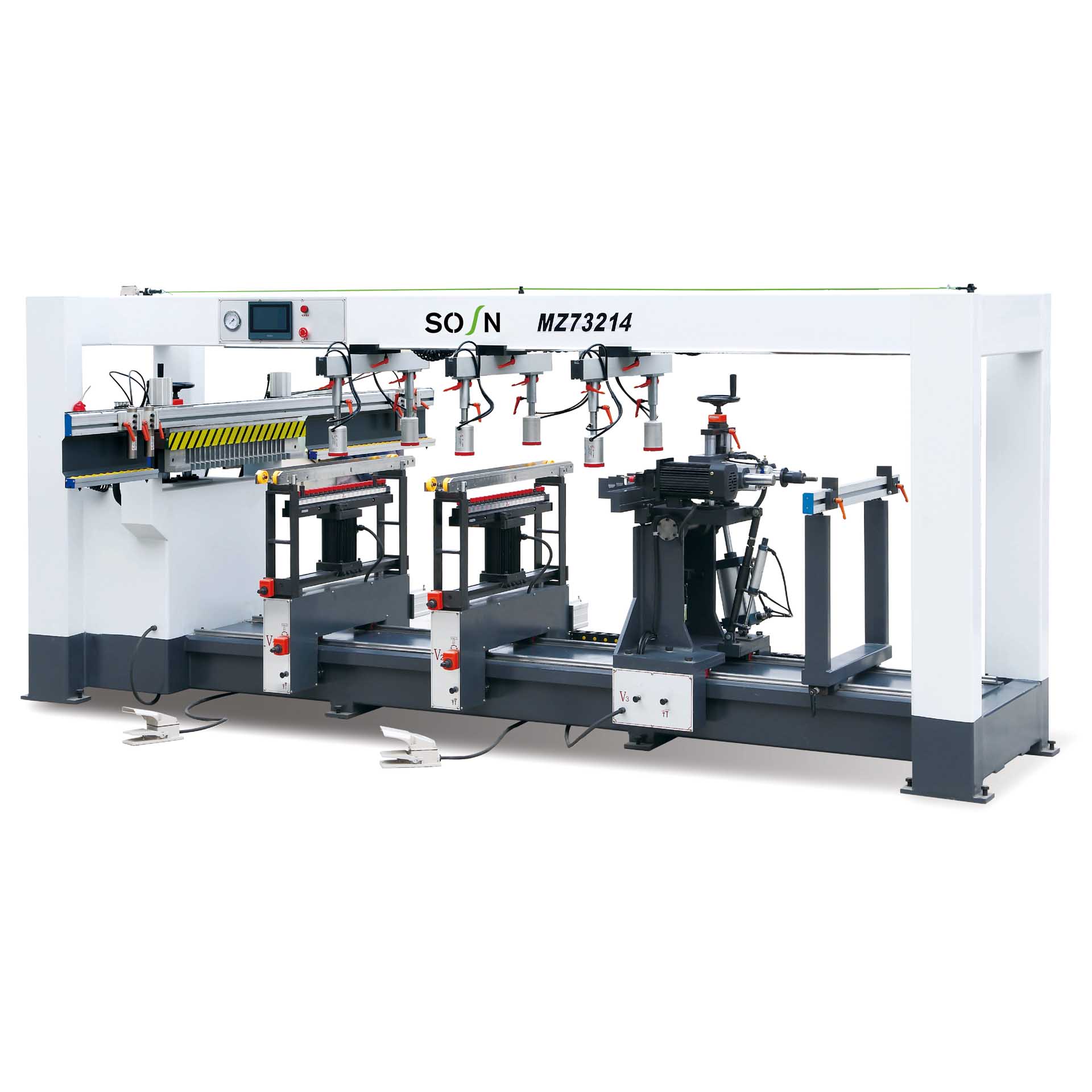 MZ-73214 Four- Row Wood Drilling Machine with 21 spindles x 4 rows. Max working diam. 35mm. Max working depth 60mm.